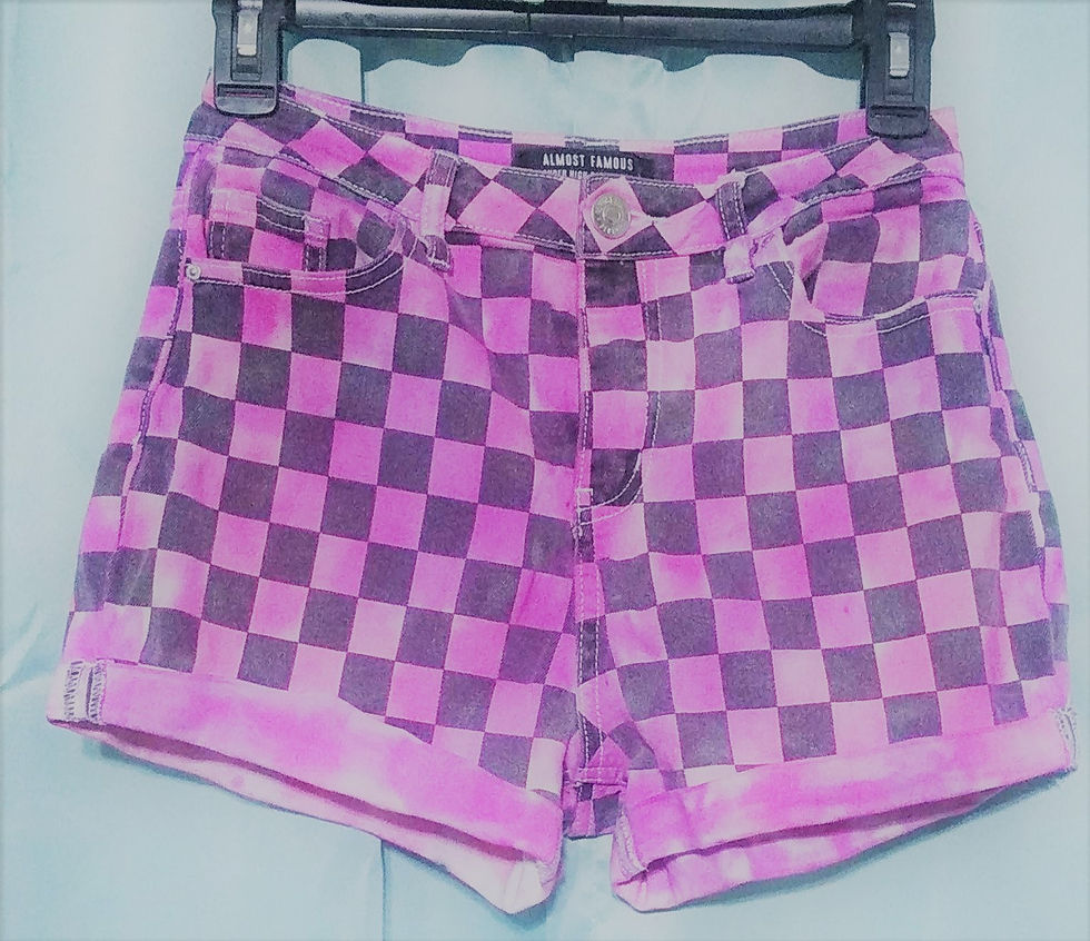 Pack the Tie Dye Checkered Shorts for your next camping trip!www.casisboutique.comWomens 5 Tie Dye Checkered Shorts | Casi's BoutiqueWomens pink and purple tie dye and black checkered high rise shorts Size - 5 #shorts #tiedye #checkered #looks #camping